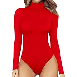 Damen Body Bodysuit Stehkragen Langarm Overall mit Rollkragen Jumpsuit Pullover Herbst T-Shirt Bodies Langarmshirt Slim Oberteil Elastisch Stilvoller Unterzieh-Body Tops