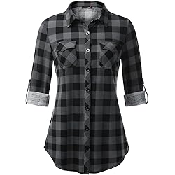 24,63 € (ab 19. Dezember 2025 06:11 GMT +01:00 - Mehr InformationenProduct prices and availability are accurate as of the date/time indicated and are subject to change. Any price and availability information displayed on [relevant Amazon Site(s), as applicable] at the time of purchase will apply to the purchase of this product.)DJT Damen Weiches Gestrick Karierte Bluse Langarm 3/4 Roll Up Ärmel Hemdbluse Button-down Blusen Top