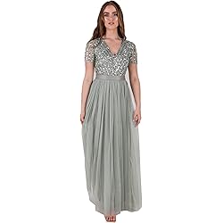 14,99 € (ab 17. Januar 2026 07:02 GMT +01:00 - Mehr InformationenProduct prices and availability are accurate as of the date/time indicated and are subject to change. Any price and availability information displayed on [relevant Amazon Site(s), as applicable] at the time of purchase will apply to the purchase of this product.)Maya Deluxe Damen Maxi Women's Embellished Sequin Long Short Sleeve V Neck High Empire Waist Cut Shiny Prom We Bridesmaid Dress, Taupe, 36 EU