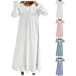 19,99 € (ab 3. Februar 2026 13:08 GMT +01:00 - Mehr InformationenProduct prices and availability are accurate as of the date/time indicated and are subject to change. Any price and availability information displayed on [relevant Amazon Site(s), as applicable] at the time of purchase will apply to the purchase of this product.)Lang Nachthemd Damen Langarm Viktorianisch Nachtkleid mit Schleife und Spitzenbesatz Niedlich Prinzessinnen Schlafshirt Vintage Weich Nachtwäsche Leichte Locker Schlafkleid Winternachthemd Hausanzug