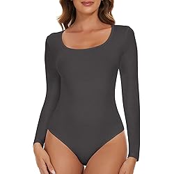 SHAPERIN Damen Body Langarm Rundhals Bodysuit Langarmshirt Damenbody Tanga Long Sleeve Bodysuits Tops Unterziehbody