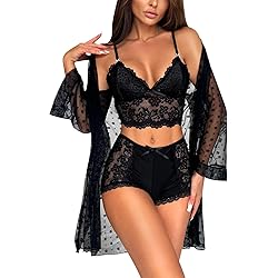 RSLOVE Sexy Dessous Set für Damen - Spitzen Unterwäsche Morgenmantel mit BH und Höschen
