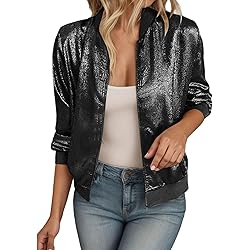 29,99 € (ab 2. Februar 2026 08:14 GMT +01:00 - Mehr InformationenProduct prices and availability are accurate as of the date/time indicated and are subject to change. Any price and availability information displayed on [relevant Amazon Site(s), as applicable] at the time of purchase will apply to the purchase of this product.)Generisch Bomberjacke Damen Kurze Blouson Jacke Casual Übergangsjacke Elegant Dünne Jacken Zip Up Herbstjacke Leichte Coat Glitzer Festival Outfit