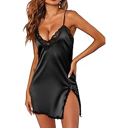 9,99 € (ab 2. Februar 2026 08:14 GMT +01:00 - Mehr InformationenProduct prices and availability are accurate as of the date/time indicated and are subject to change. Any price and availability information displayed on [relevant Amazon Site(s), as applicable] at the time of purchase will apply to the purchase of this product.)Ekouaer Nachthemd Damen Satin Ärmellos Negligee Sexy Kurz Nachtwäsche Spitze Cami Nachtkleid Dessous mit Verstellbare Träger S-XXL