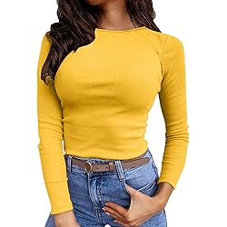 8,99 € (ab 2. Februar 2026 19:23 GMT +01:00 - Mehr InformationenProduct prices and availability are accurate as of the date/time indicated and are subject to change. Any price and availability information displayed on [relevant Amazon Site(s), as applicable] at the time of purchase will apply to the purchase of this product.)Gelbes Langarmshirt Damen Basic Slim fit Unterziehshirt Elegant Einfarbig Long Sleeve Shirt Casual Y2K Dünn Oberteile