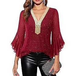 69,43 € (ab 19. Dezember 2025 06:11 GMT +01:00 - Mehr InformationenProduct prices and availability are accurate as of the date/time indicated and are subject to change. Any price and availability information displayed on [relevant Amazon Site(s), as applicable] at the time of purchase will apply to the purchase of this product.)KILOXYEFRO Pailletten Glitzer Oberteile Damen Silvester Outfit Elegant Sexy Casual Oberteile Festliche Pailletten Tunika Blusen