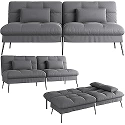 COMHOMA Schlafsofa mit Schlaffunktion â Futonbezug ausklappbar â Ecksofa â GĂ€stesofa 3-Sitzer â mit Verstellbarer RĂŒckenlehne aus grauem Stoff