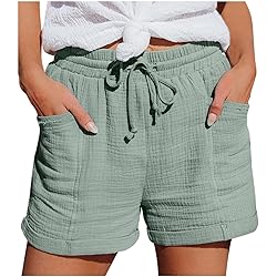 47,19 € (ab 21. März 2026 07:49 GMT +01:00 - Mehr InformationenProduct prices and availability are accurate as of the date/time indicated and are subject to change. Any price and availability information displayed on [relevant Amazon Site(s), as applicable] at the time of purchase will apply to the purchase of this product.)Kurze Hose Damen Shorts 2026 Sommerhose Leicht Musselin Kurze Hose Leinenhose Sommer Leinen Short Beach Hosen Mit Taschen Leicht Stoffhose Kleid Stretch Gerades Bein Kordelzug Hosen Clothing